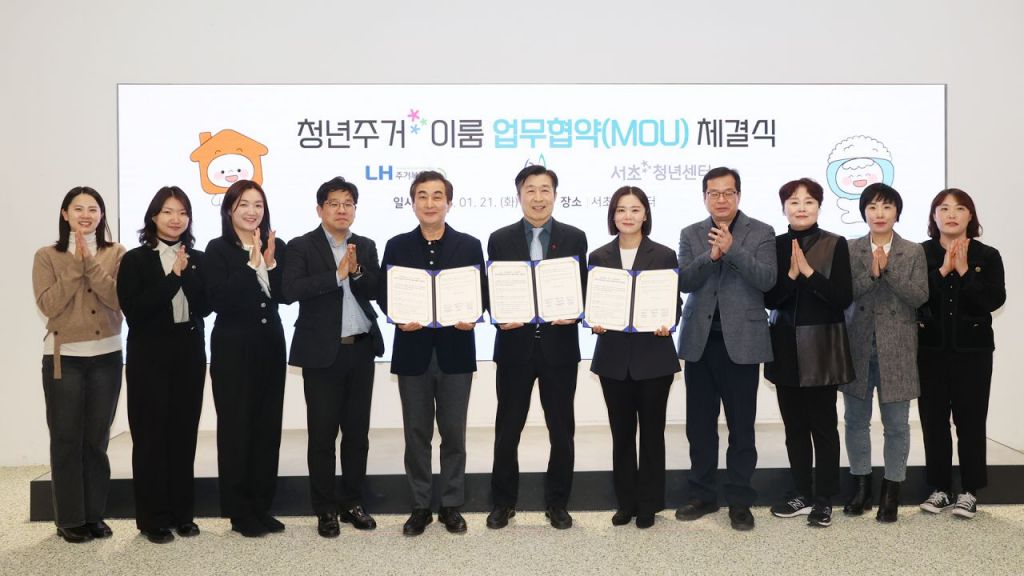 서울 서초구(구청장 전성수)는 지난 21일 서초청년센터 컨퍼런스홀에서 청년들의 주거 안정을 지원하기 위해 LH주거복지정보(대표 홍성필), 서초청년센터(센터장 정가람)와 업무협약을 체결하고 올해 ‘청년주거 이룸 프로젝트’를 시행한다고 23일 밝혔다.