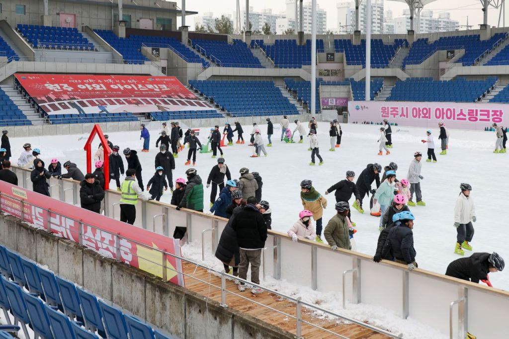 강원특별자치도 원주시가 댄싱공연장에 연 야외 아이스링크 모습. 야외 아이스링크는 지난 해 12월 개장해 오는 2월 9일까지 운영한다. 사진=원주시청 제공