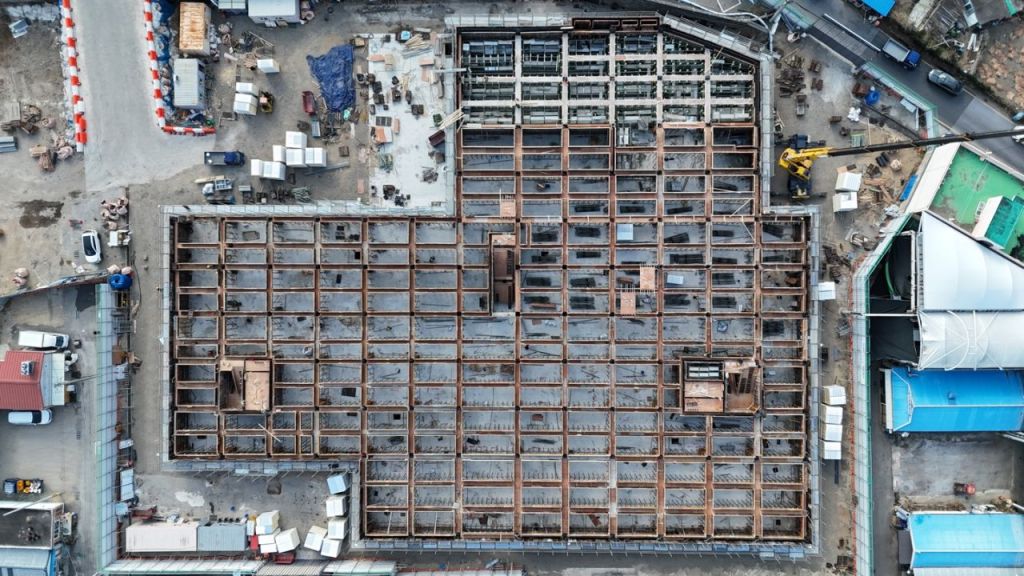 경북 영덕군은 2021년 소실된 영덕시장 재건축의 8월 준공 목표를 달성하기 위해 겨울철 공사 중단 없이 추진하고 있다.