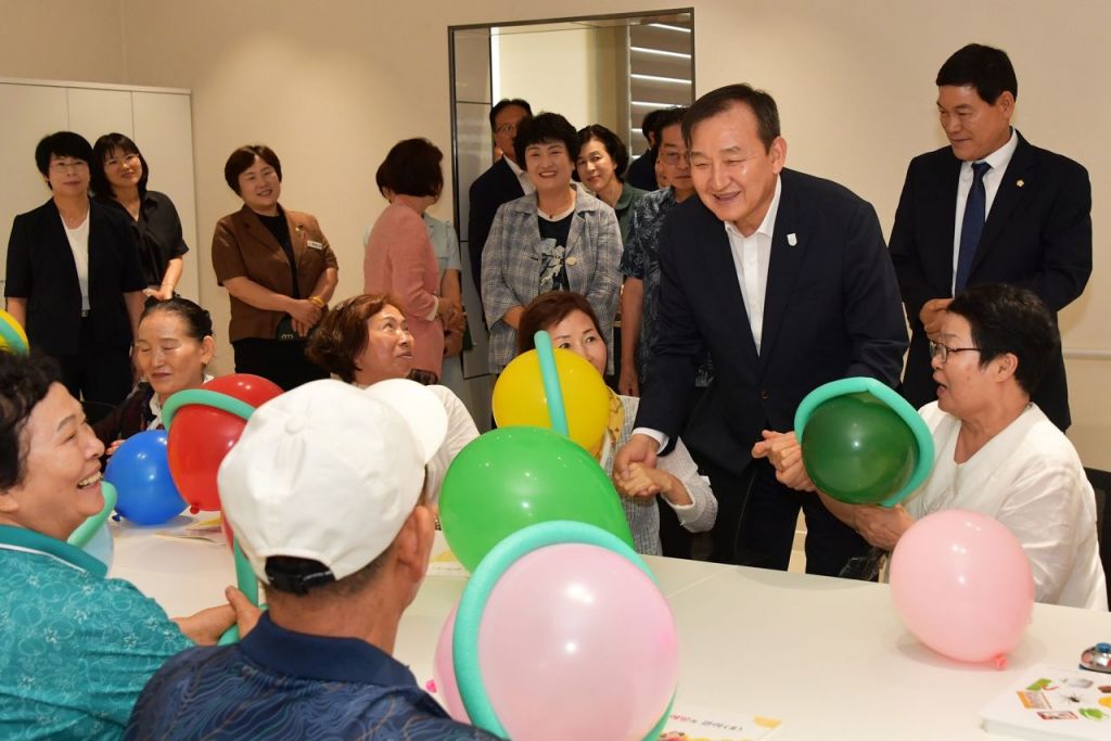 이병노 담양군수가 지난해 향촌노인종합복지관 개관식에서 주민들과 인사를 나누고 있다. 담양군 제공
