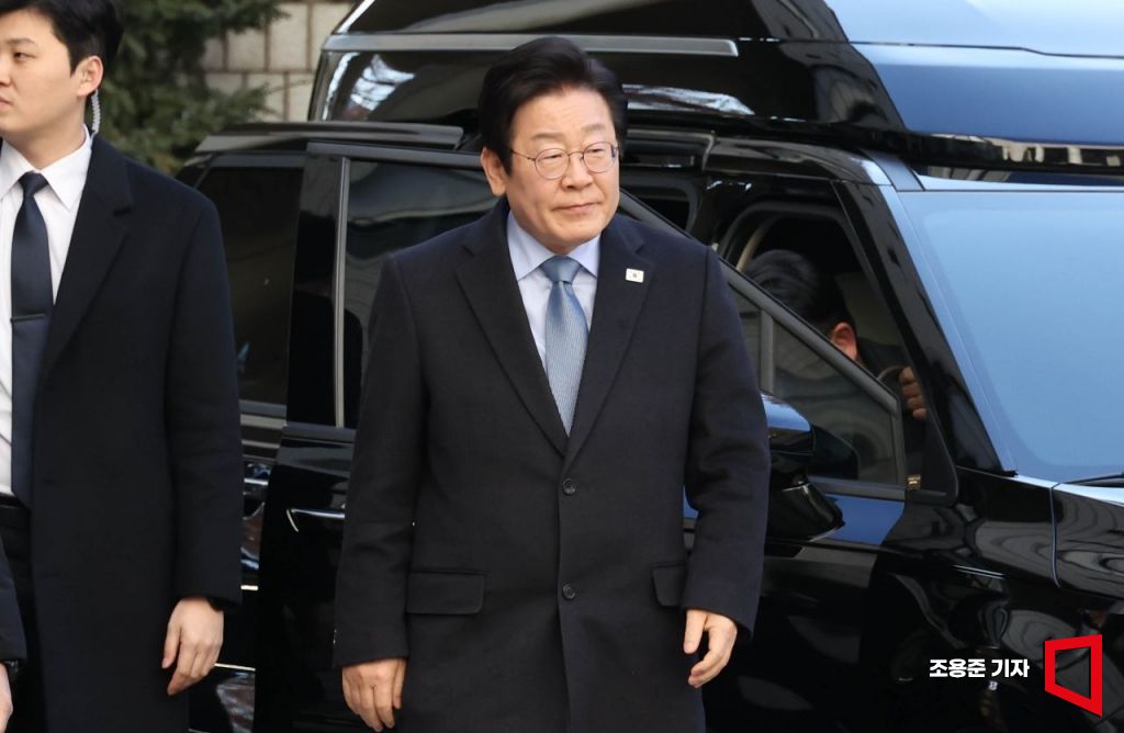 이재명 더불어민주당 대표가 23일 서울 서초구 서울고등법원에서 열린 공직선거법 위반 사건 항소심 첫 재판에 출석하고 있다.