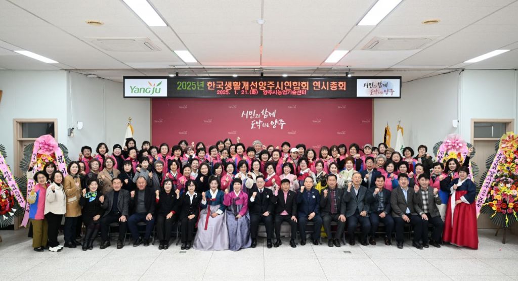 강수현 양주시장이 최근 ‘양주농업기술센터 대회의실’에서 개최된 ‘2025년 한국생활개선양주시연합회 연시총회’에 참석해 참석자들과 기념촬영을 하고 있다.