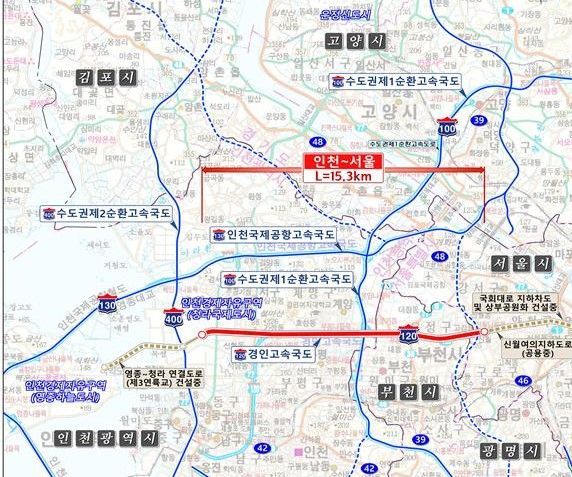 국토교통부는 23일 인천 서구 청라동∼서울시 양천구 신월동 15.3㎞ 구간에 왕복 4차로 지하 고속도로를 신설하는 사업이 예비타당성조사를 통과했다고 발표했다.