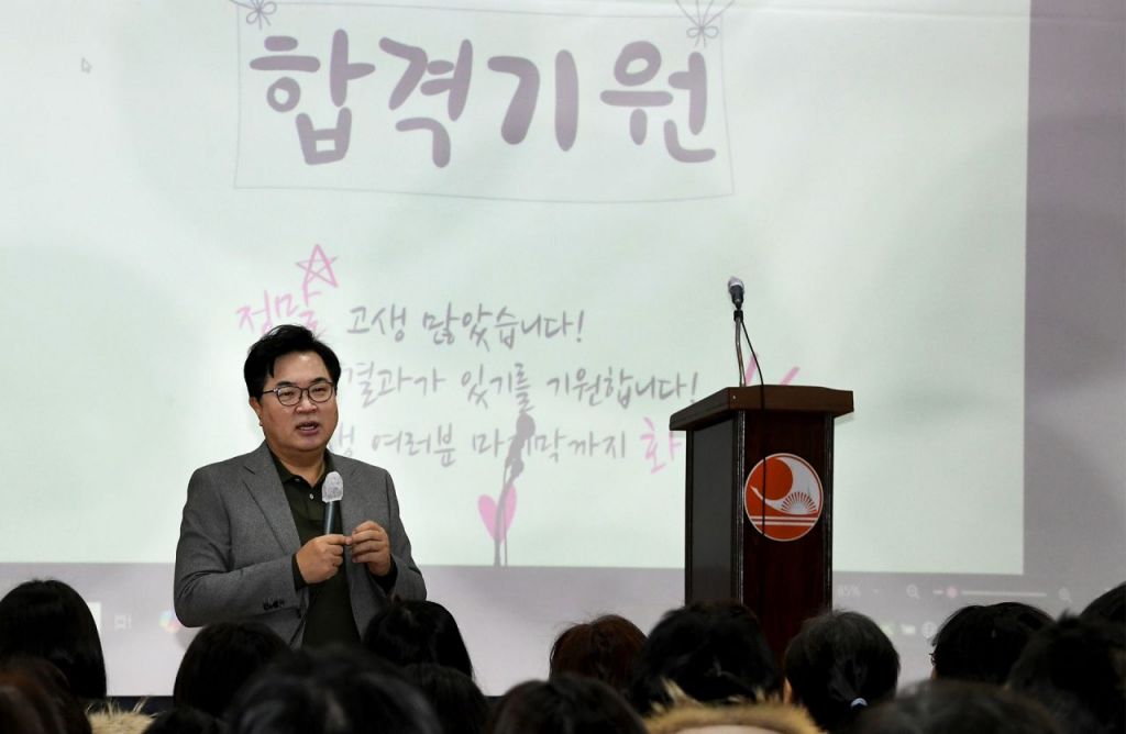박일하 동작구청장이 지난해 12월 입시지원센터 주관으로 열린 ‘정시 전형 대비 명사 초청 입시설명회’에 참석해 인사말을 하고 있다. 동작구 제공.
