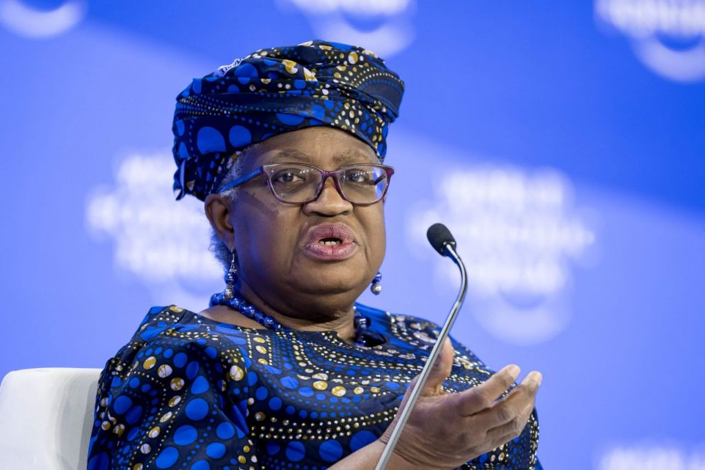 응고지 오콘조이웨알라 세계무역기구(WTO) 사무총장이 지난 21일(현지시간) 스위스 다보스에서 열린 세계경제포럼(WEF·다보스포럼)에서 발언하고 있다. AFP연합뉴스
