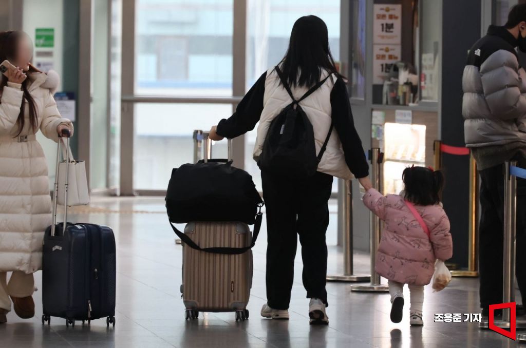민족 대명절인 설 연휴가 하루 앞으로 다가온 24일 오전 서울 용산구 서울역에서 귀성객들이 고향가는 열차를 타기 위해 이동하고 있다.