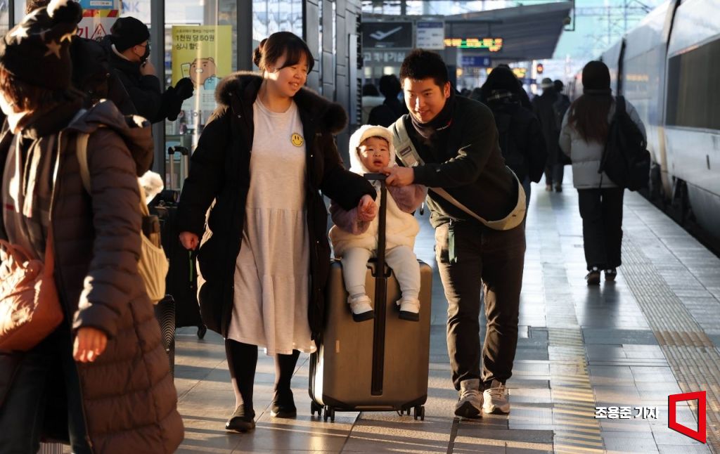 민족 대명절인 설 연휴가 하루 앞으로 다가온 24일 오전 서울 용산구 서울역에서 귀성객들이 고향가는 열차를 타기 위해 이동하고 있다.