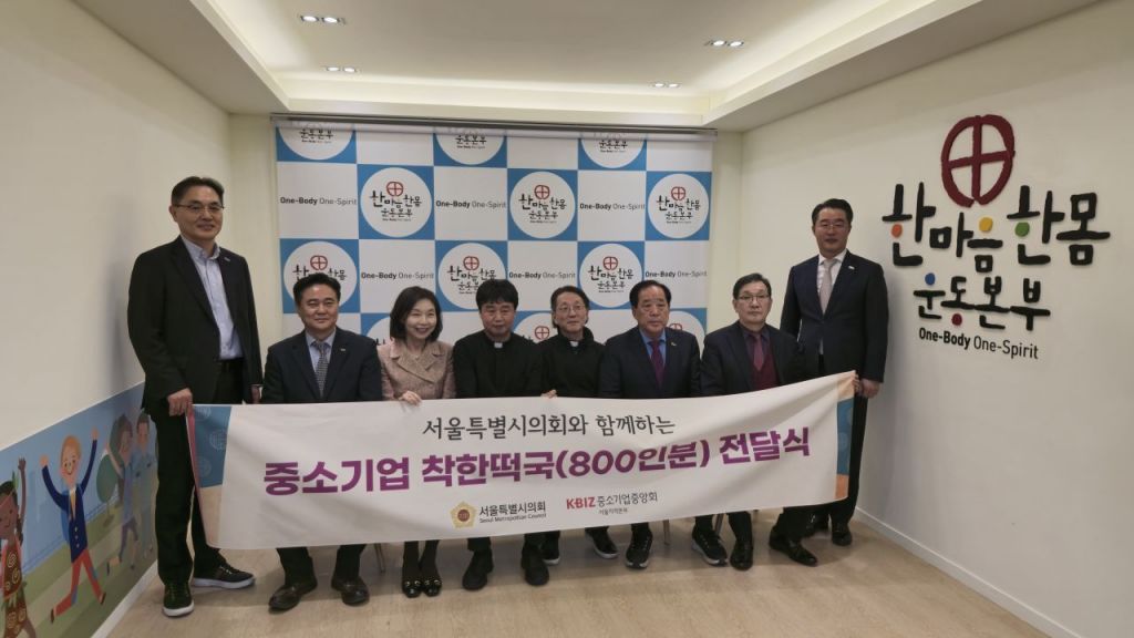 중소기업중앙회 서울지역본부는 23일 서울특별시의회와 함께 명동성당(한마음한몸운동본부)에서 소외된 이웃들을 위한 설맞이 떡국세트 전달식을 진행했다고 밝혔다.