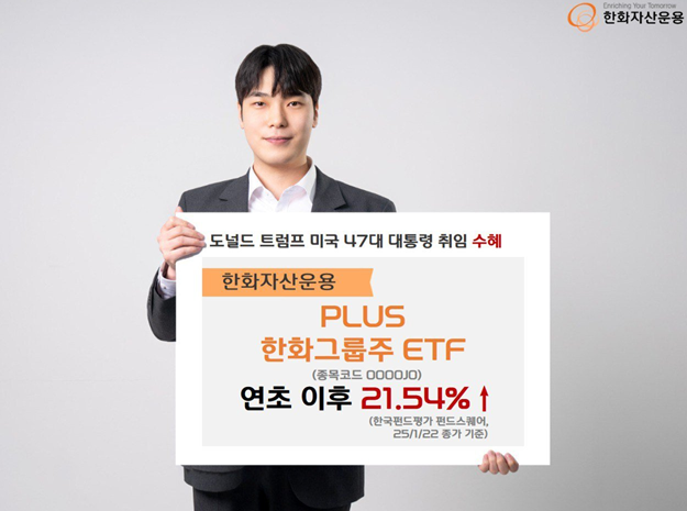 한국펀드평가 펀드스퀘어에 따르면 PLUS한화그룹주 ETF는 22일 종가 기준 연초 이후 수익률 21.54%를 기록했다.