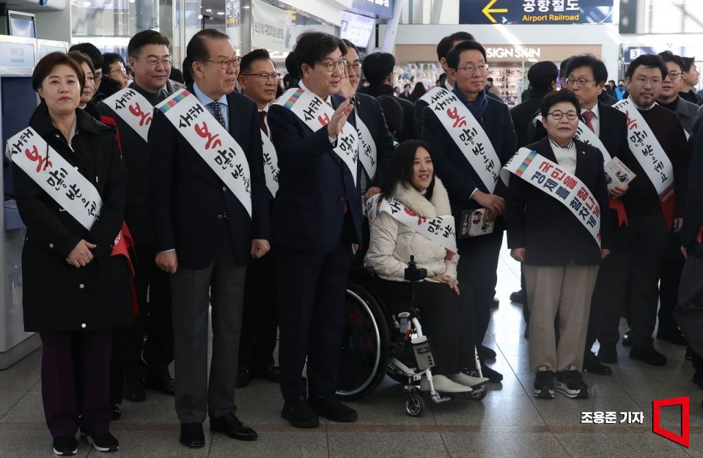 권영세 국민의힘 비상대책위원장을 비롯한 당 지도부가 설연휴를 하루 앞둔 24일 오전 서울역에서 시민들에게 귀성인사를 하고 있다.