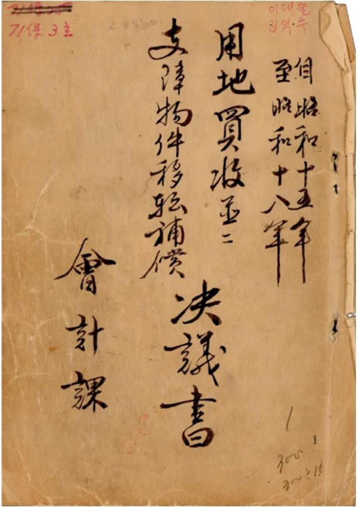 1941년 작성된 토지보상 문서.