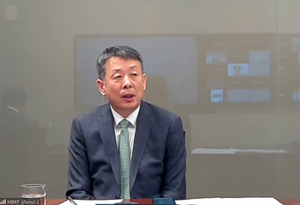 김광일 MBK파트너스 부회장이 24일 온라인 기자간담회를 열고 향후 계획을 설명하고 있다.