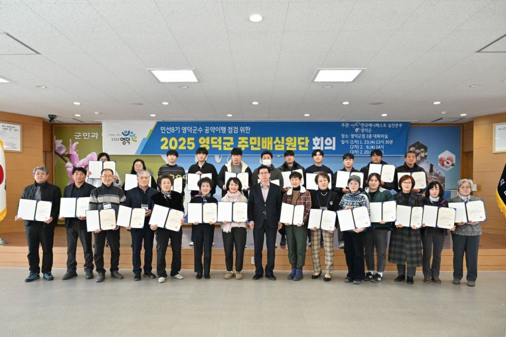 경북 영덕군은 민선 8기 공약 이행을 점검하고 평가하기 위해 지난 23일 청사 대회의실에서 2025년 주민배심원단 30명을 위촉하고 제1차 회의도 함께 개최했다.