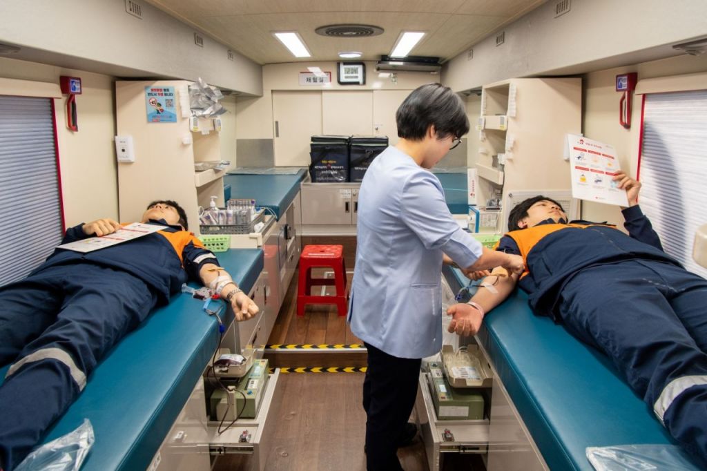 지난 23일 광양제철소 새해 맞이 헌혈 행사에서 직원들이 헌혈에 동참하고 있다. 광양제철소 제공
