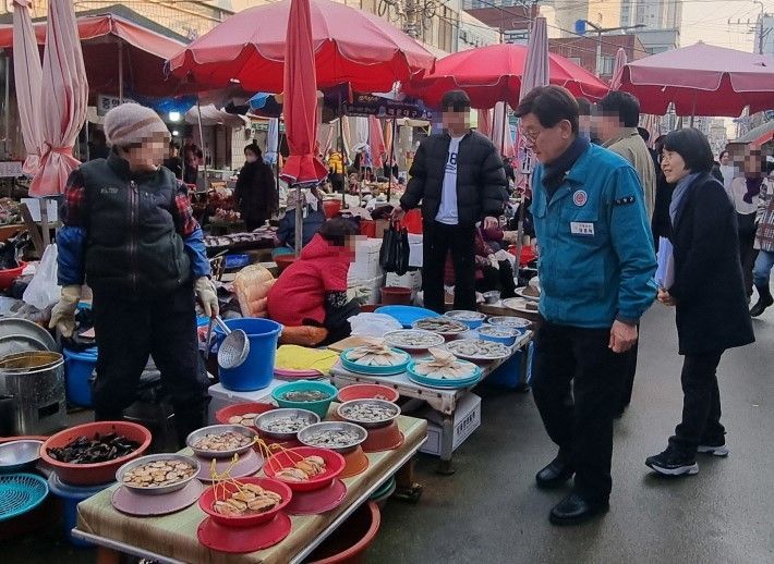 이날 정 군수는 기장시장 내 여러 점포를 방문해 명절 성수품 물가를 살피고 어려운 경제 상황으로 힘든 시간을 보내는 상인들을 격려하며 고충을 청취했다.