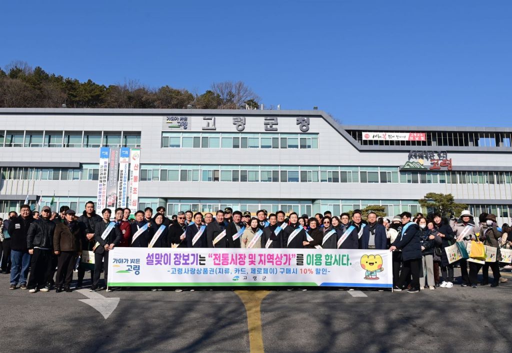 고령군(군수 이남철)은 설명절 장날인 24일 고령대가야시장에서 공무원 및 유관기관·단체, 기업체 임직원 등 500여명이 참여한 가운데 전통시장과 지역상가 이용 캠페인을 펼치며 장보기 행사를 가졌다.