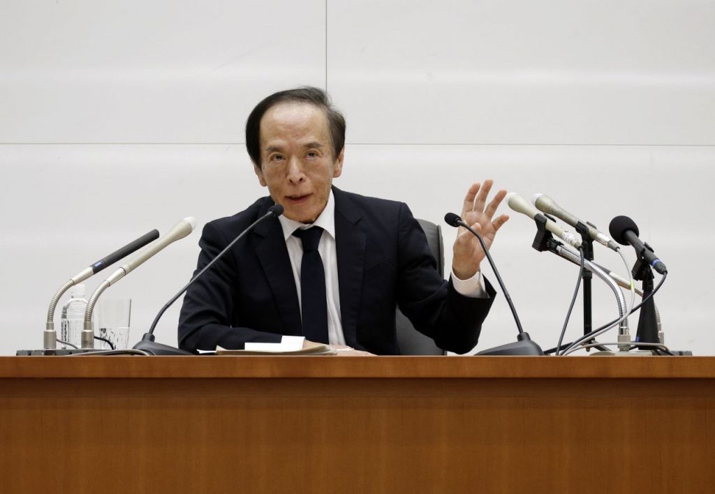 우에다 가즈오 일본은행(BOJ) 총재가 24일 금융정책결정회의 후 기자회견을 하고 있다. EPA연합뉴스