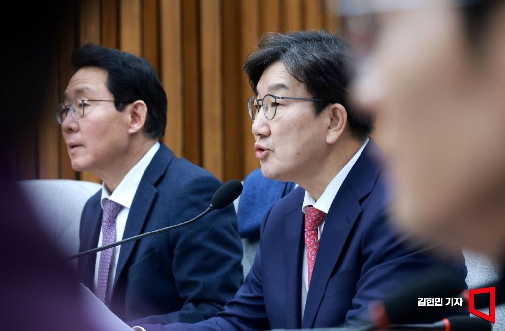 권성동 국민의힘 원내대표가 24일 국회에서 열린 원내대책회의에서 발언하고 있다. 김현민 기자