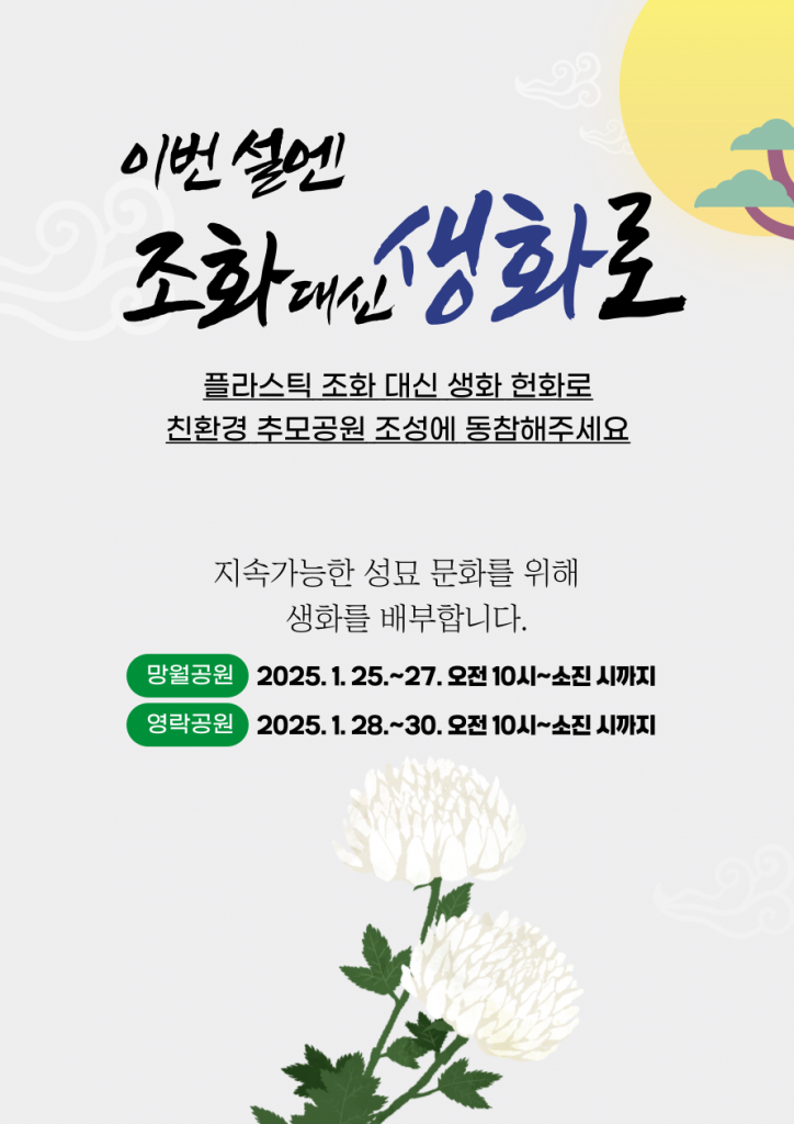설 명절 기간 망월묘지공원과 영락공원에 플라스틱 조화 반입이 제한된다.
