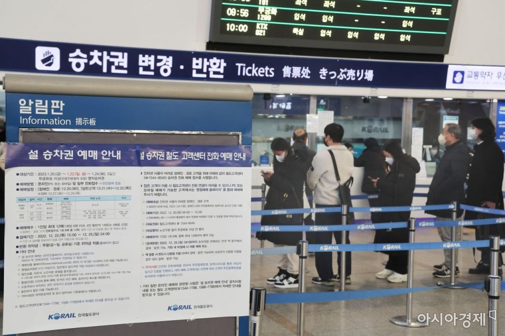설 연휴 기차표 온라인 예매가 시작된 지난달 20일 서울역 매표소 앞에 온라인 예매 안내문이 붙어 있다. /허영한 기자 younghan@
