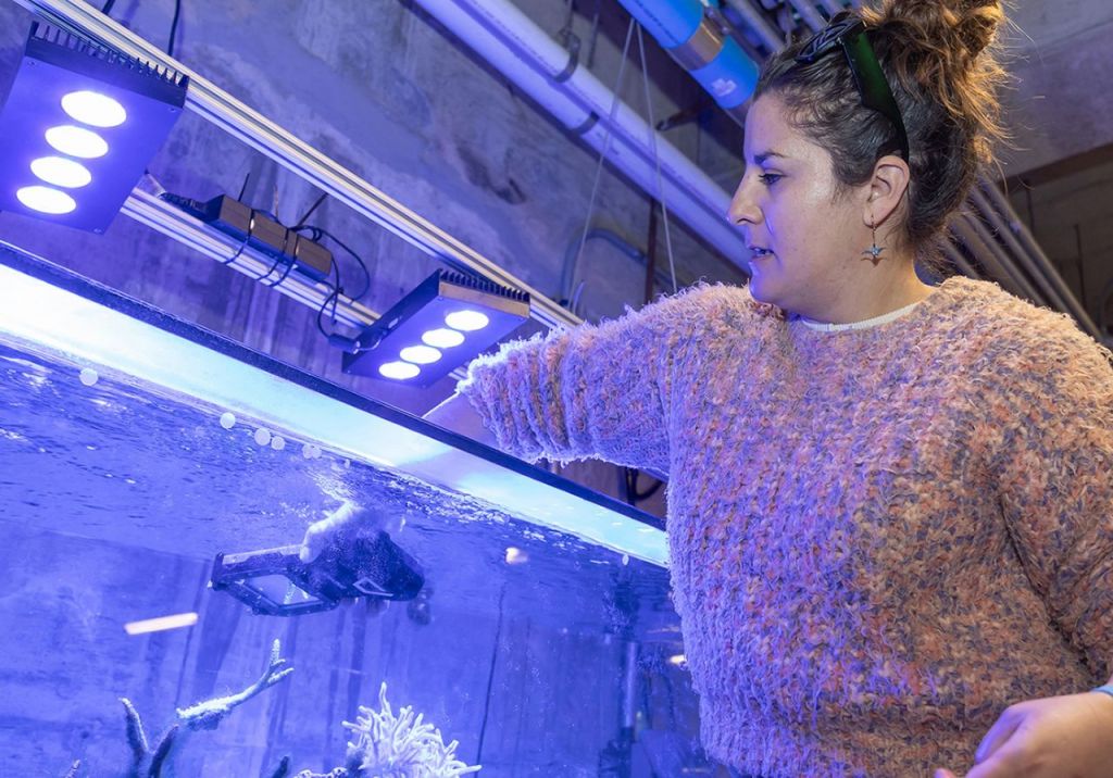 24일(현지시간) 미국 캘리포이나대 샌디에이고(UCSD) 해양학 연구소 스크립스 연구소 지하실에서 스크립스 관계자가 '오션모드'를 킨 갤럭시S24로 수족관 내부를 촬영하고 있다/사진=삼성전자