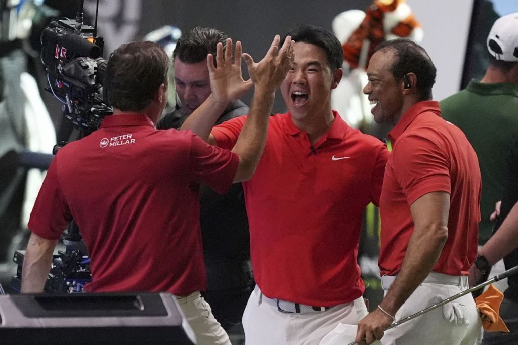 김주형과 타이거 우즈(미국)가 스크린 골프 대회에서 첫 승리를 합작했다.