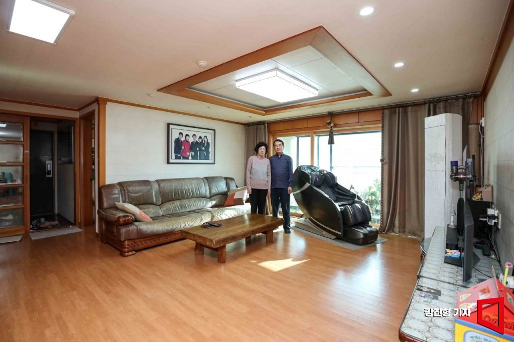 서울 용산구에 사는 노영근(66세)씨와 주영례(65세)씨가 자택 거실에 나란히 서있다. 노 씨는 지금보다 작은 집으로 이사해 차액으로 노후를 보낼 계획을 세우고 있다. 강진형 기자