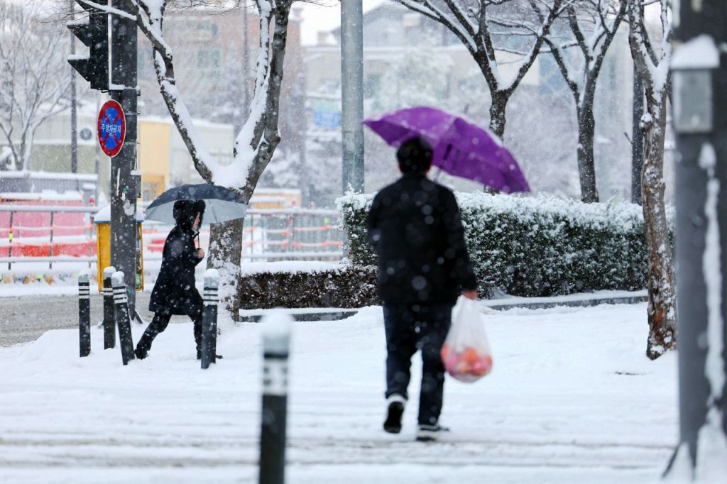 충남 서해안과 충남 남부 내륙, 전북에는 새벽부터 아침 사이 1㎝ 안팎의 눈이 내리는 곳이 있겠다. 이 지역의 예상 강수량은 1㎜ 안팎이다.