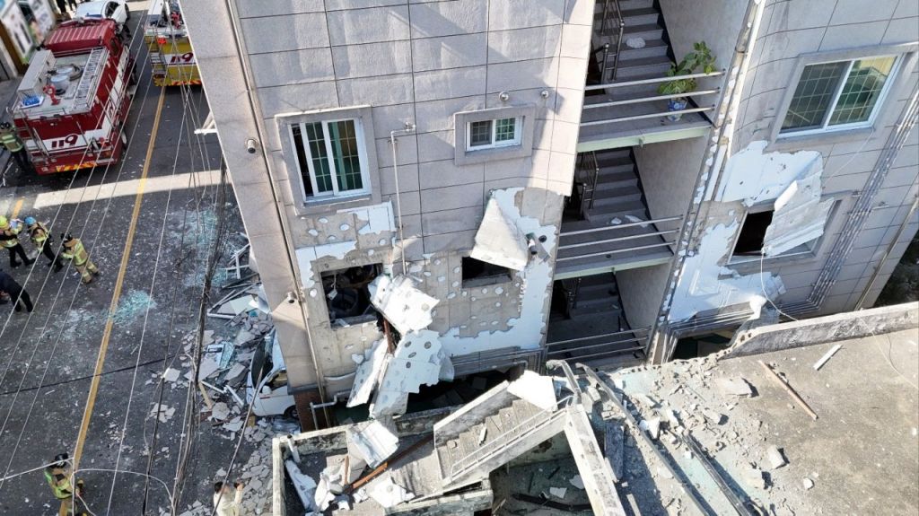 폭발 여파로 빌라 2층과 3층 유리창과 외벽, 내부 가구, 주변 건물 창틀 등이 부서졌다.