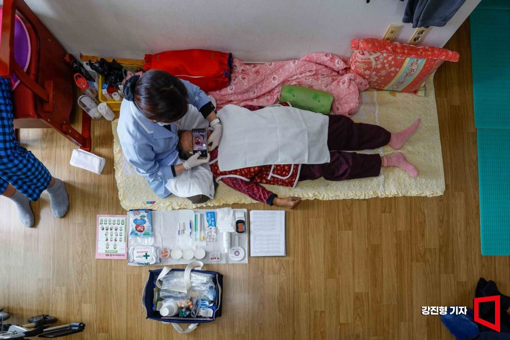 한국에서는 잇몸마사지라는 게 낯설지만, 일본에서는 개호(요양)보험 제도에 있는 일상적인 노인 서비스다. 김 교수는 "몸이 회복되더라도 음식을 못 씹으면 잘 못 먹게 되고 그러면 다시 건강이 나빠진다"며 "근육이 뭉치면 풀어주는 것처럼, 잇몸 근육을 만져서 잘 드실 수 있도록 하고, 침샘을 자극해서 소화를 돕는다"고 설명했다. 배 할머니가 한참 동안 입을 오물오물 움직였다. 그리고 주름 팬 입술 사이로 동그란 껌을 내밀었다. 옆에 있던 여동생이 손뼉을 쳤다. "언니 너무 잘했당께! 밥을 잘 먹어야 계속 같이 살제!"