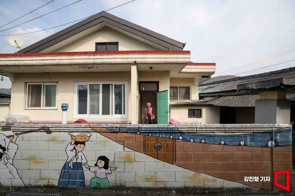 이정숙 할머니가 11월 5일, 충북 진천군 자택에서 문을 열고 밖을 내다보고 있다. 강진형 기자