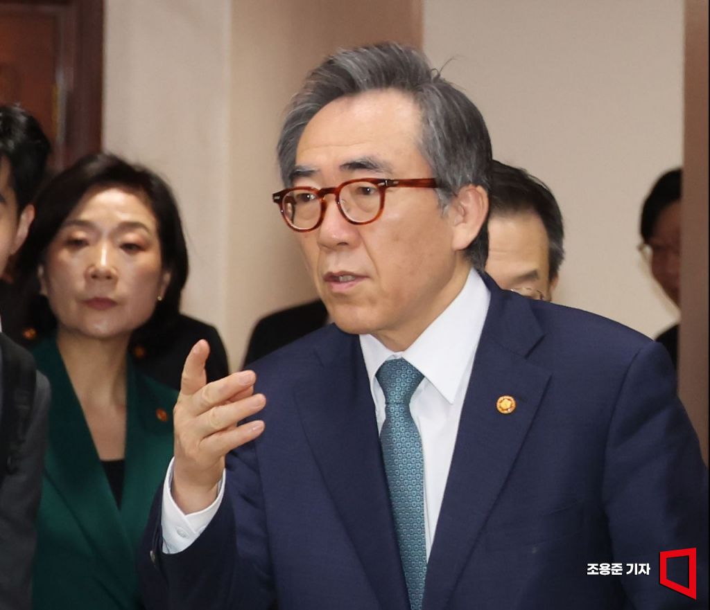 조태열 외교부 장관이 15일 서울 종로구 정부서울청사에서 열린 비상경제장관회의에 참석하고 있다. 사진=조용준 기자 jun21@