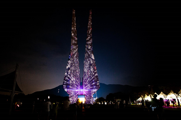 독립기념관 겨례의 탑 한글 미디어 파사드.