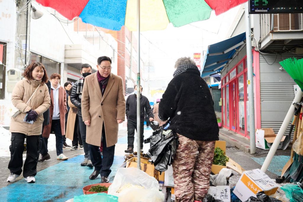 양주시는 오는 2월 첫째 주부터 공직자들이 함께 참여하는 ‘관내 식당 이용의 날’을 운영한다. 강수현 시장이 상인과 대화를 나누고 있다. 양주시 제공