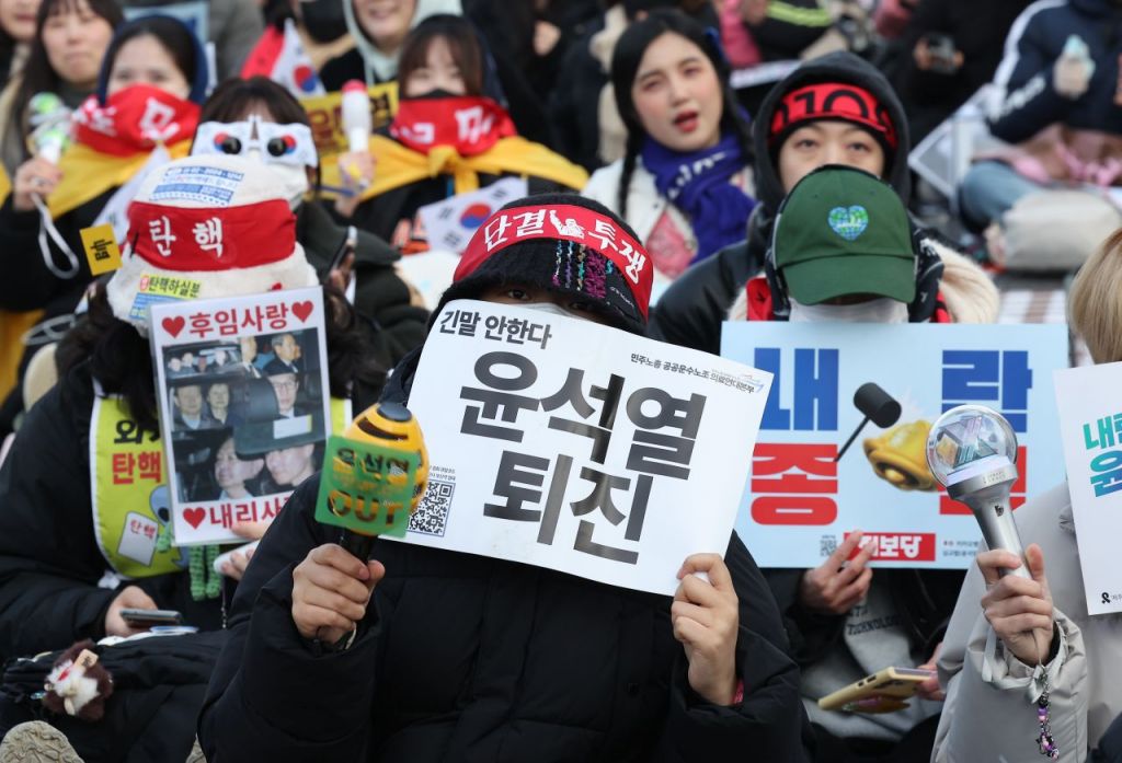 윤석열 즉각 퇴진·사회대개혁 비상행동이 1일 오후 서울 종로구 광화문 인근 도로에서 연 9차 범시민 총궐기대회에서 참가자들이 손팻말을 들고 있다. 연합뉴스