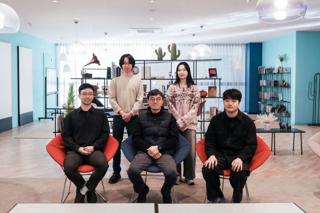 연구진 (왼쪽 하단부터 반시계 방향) 김규상 연구원, 정경민 교수, 오혜성 연구원(제1저자), 방지윤 연구원, 김산 연구원. UNIST 제공