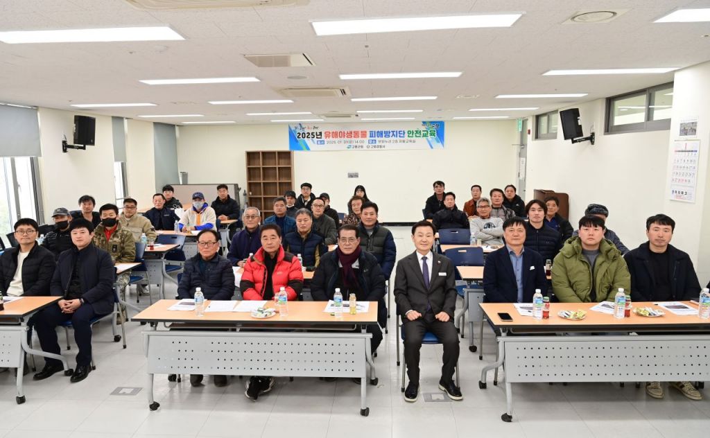 군은 공개 모집을 통해 최종 선정된 피해방지단(27명)과 읍·면 담당자(8명)를 대상으로 지난달 31일 고령군 대가야문화누리 2층 자활교육실에서 ‘2025년 유해야생동물 피해방지단 운영 교육’을 실시했다.
