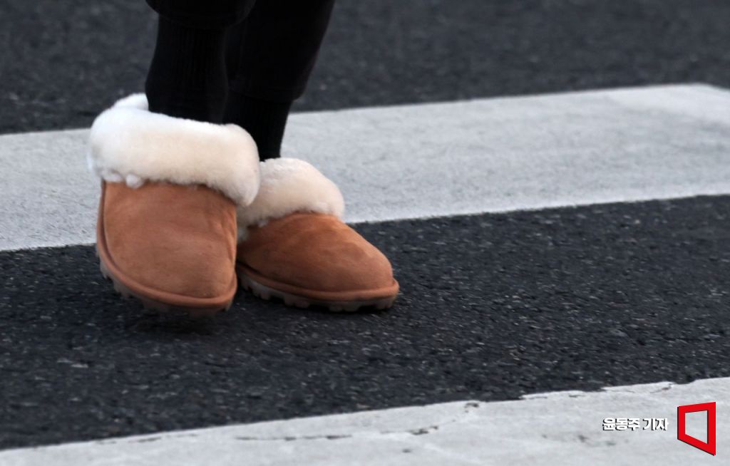 절기상 봄이 시작되는 ‘입춘'’인 3일 서울 광화문 사거리를 지나는 한 시민이 털신을 신고 발걸음을 서두르고 있다. 오늘 서울의 아침 체감온도가 영하 13도까지 떨어지는 등 평년보다 기온이 크게 떨어졌다.