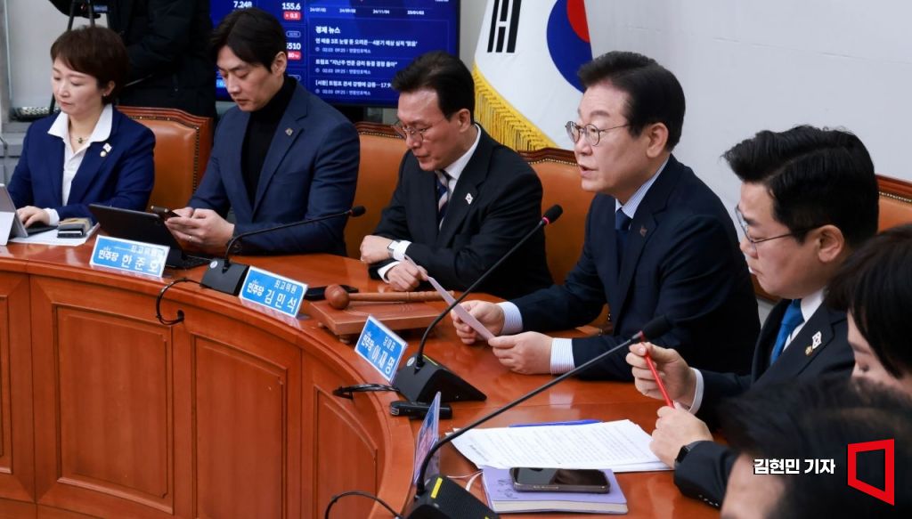 이재명 더불어민주당 대표가 3일 국회에서 열린 최고위원회의에서 발언하고 있다.