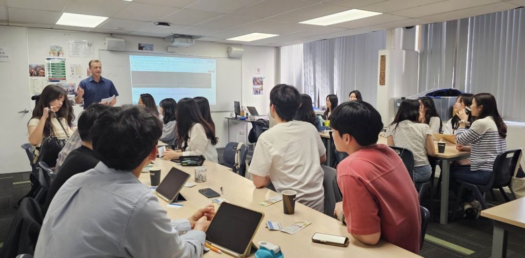 영진전문대 간호학과 학생들이 뉴질랜드 NZSE 대학에서 오리엔테이션을 받는 모습.