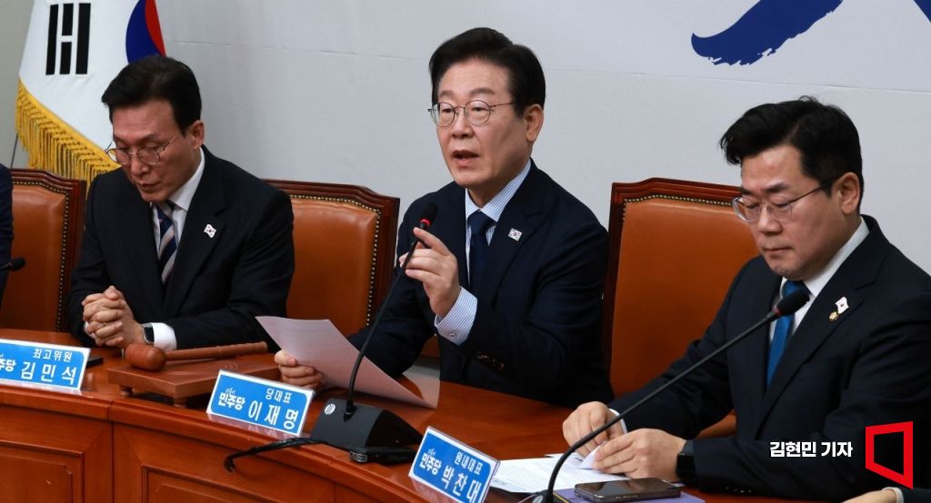 이재명 더불어민주당 대표가 3일 국회에서 열린 최고위원회의에서 발언하고 있다. 김현민 기자