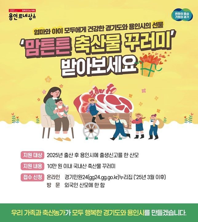 경기도 용인시는 출산 후 출생신고를 한 산모에게 한우세트를 선물하는 '맘튼튼 축산물 꾸러미 지원사업'을 진행한다고 3일 밝혔다.