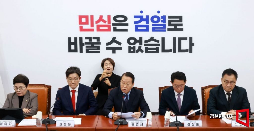 권영세 국민의힘 비상대책위원장이 3일 국회에서 열린 비상대책위원회의에서 발언하고 있다. 김현민 기자