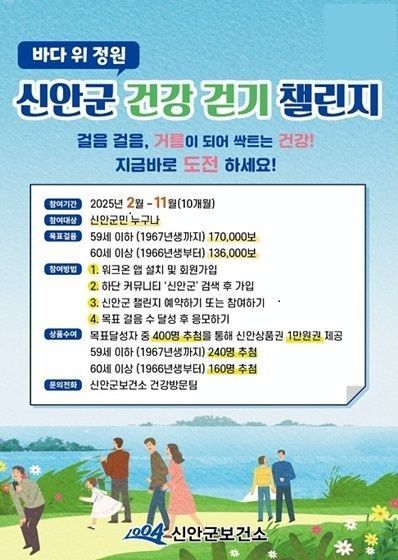 전남 신안군(군수 박우량)은 일상 속 걷기 활성화를 위해 건강 걷기 챌린지 ‘워크온’을 확대 운영한다고 3일 밝혔다.