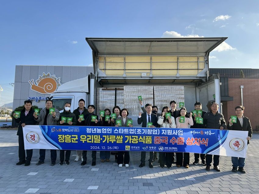 지난해 12월 장흥군농업기술센터에서 우리밀·가루쌀 가공식품 중국 수출 상차식을 개최했다. 장흥군 제공