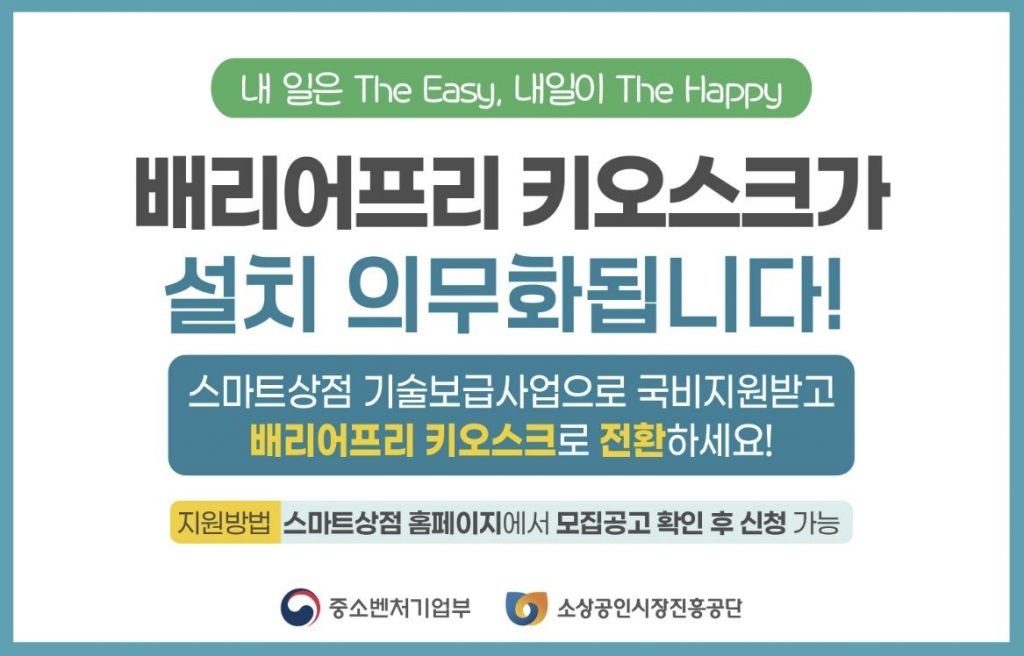 중소기업중앙회의 조사 결과, 키오스크 평균 구입비용은 스탠드형이 대당 약 356만원, 테이블형은 대당 약 133만원으로 나타났다. 키오스크 설치와 운영 비용에 대해선 응답 업체의 61.4%가 부담을 느낀다고 답했다. 이러한 부담 완화를 위해 정부는 2022년부터 기기 비용의 70%를 지원하는 '스마트상점 기술보급사업'을 진행했다. 하지만 홍보 부족으로 이 사업을 통해선 배리어프리 키오스크를 2023년엔 한 대도 설치하지 못했고 지난해도 200대를 밑돌았다.