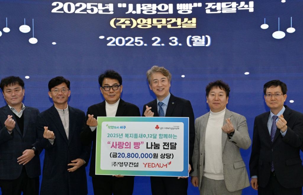 광주 서구(구청장 김이강)는 3일 ㈜영무건설(회장 박재홍)로부터 어려운 이웃을 위한 2,080만원 상당의 ‘사랑의 빵’을 전달받았다. 광주 서구 제공