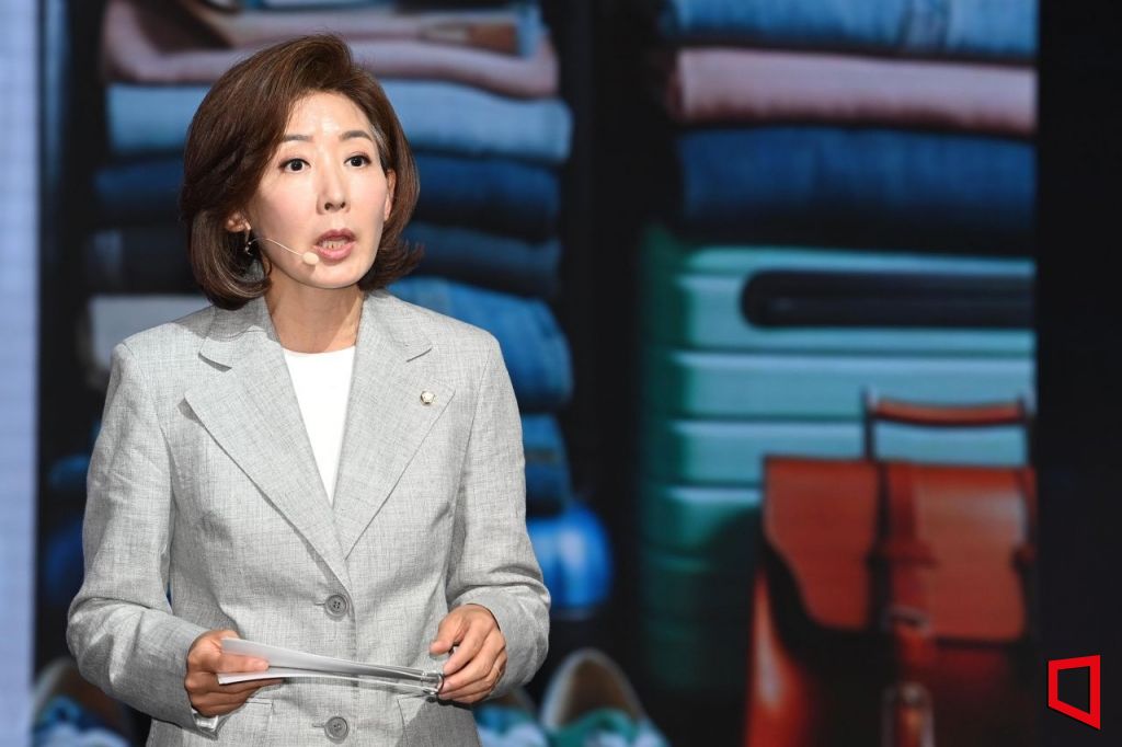 나경원 국민의힘 의원이 헌법 개정이 필요하다고 주장하는 한편, 법사위원장 자리를 국민의힘에 넘기라며 더불어민주당을 직격했다.