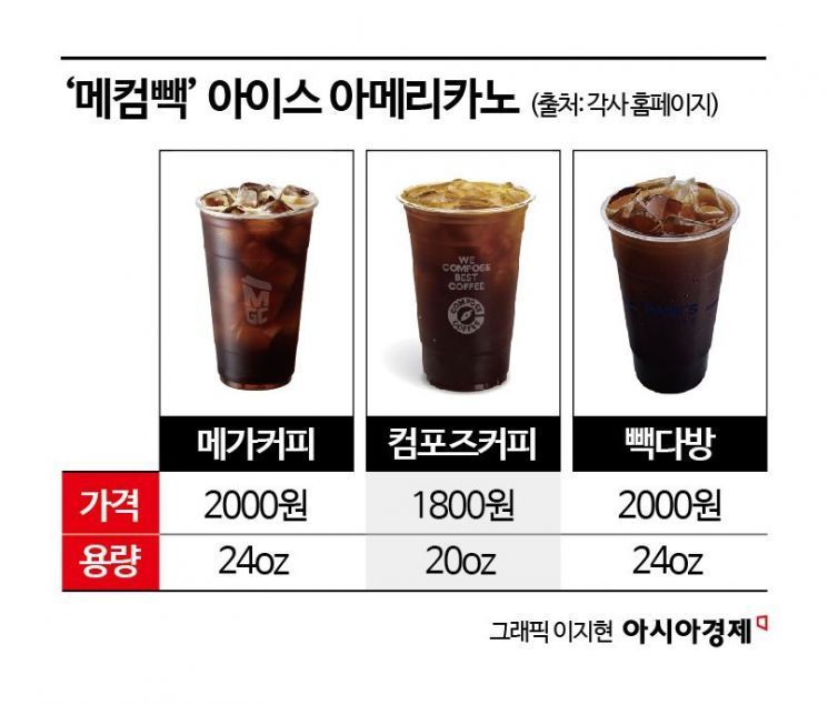 다만 컴포즈커피의 가격 인상이 아이스 아메리카노에 한정된 점, 메컴빽 중 아이스 아메리카노 가격이 여전히 가장 싼 점 등을 고려하면 시장 파장이 그리 크지 않을 것이라는 전망도 나온다. 메가커피와 빽다방 모두 핫 아메리카노는 1500원 판매하지만 아이스 아메리카노는 별도 얼음값을 더해 2000원에 팔고 있기 때문이다.
