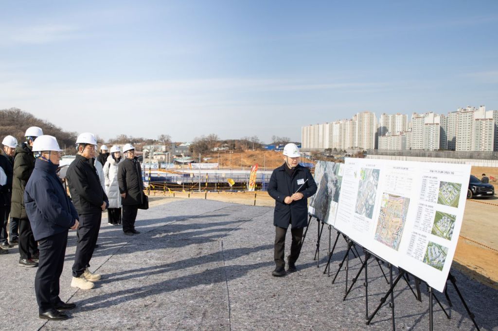 박상우 국토교통부 장관이 27일 3기 신도시 고양 창릉지구를 방문해 현장 점검하고 있다. 국토교통부 제공. 연합뉴스